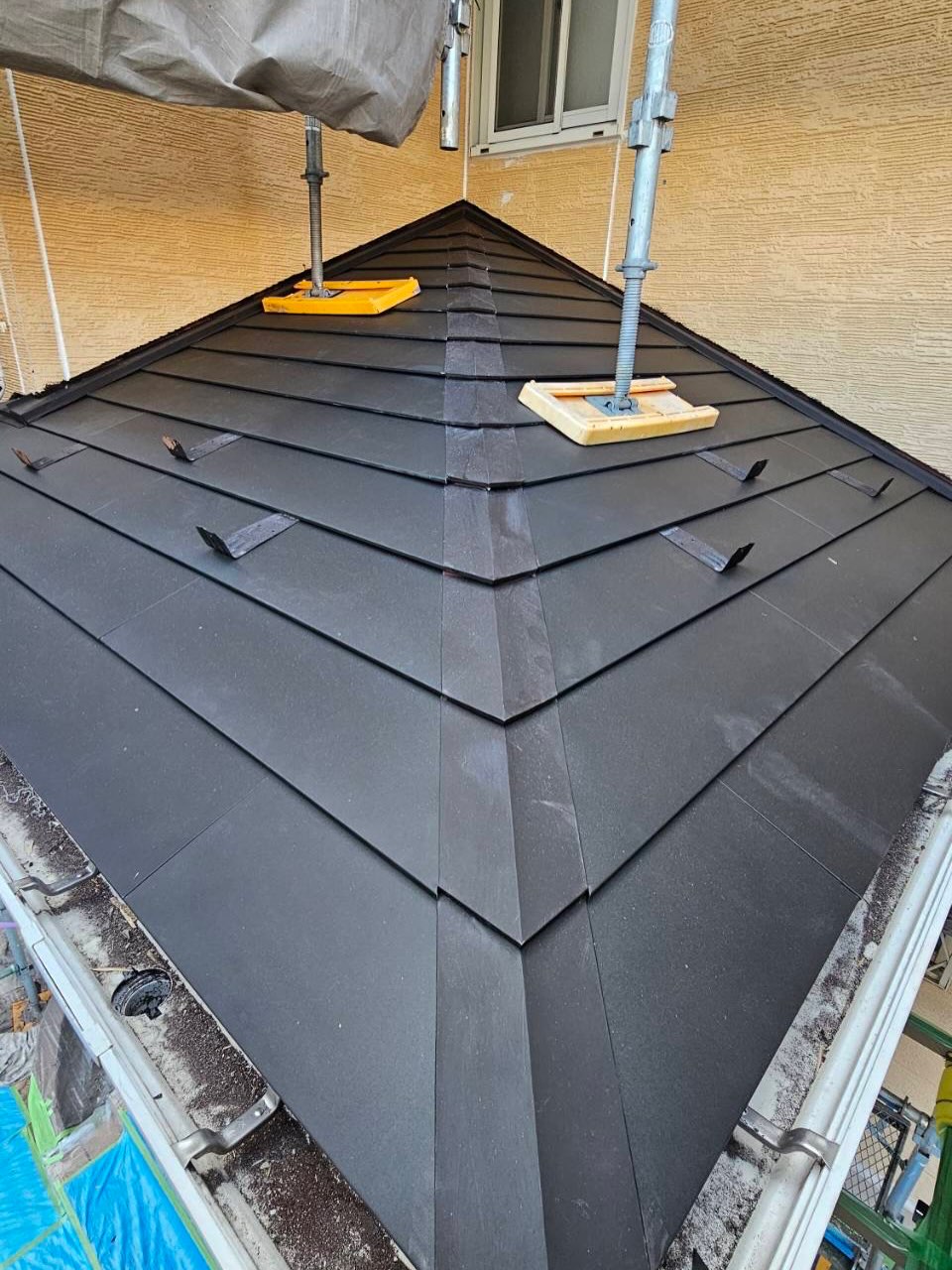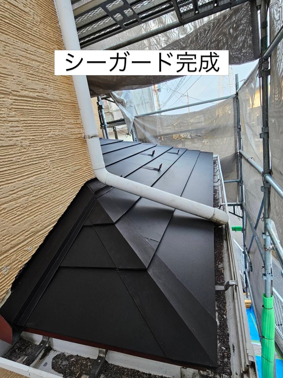 シーガードで玄関屋根施工