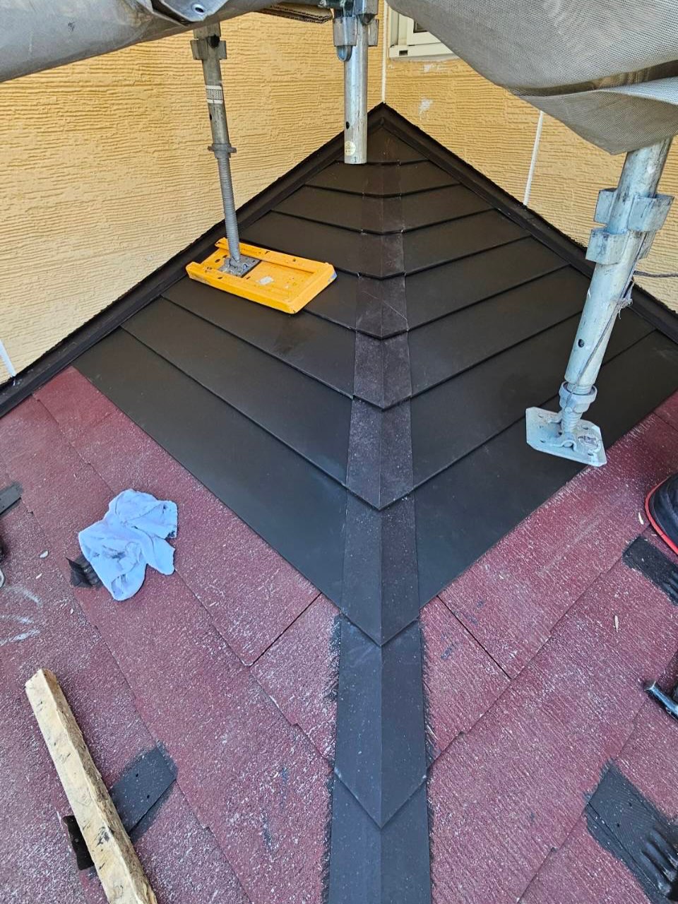 玄関屋根を葺きあげて完工しました